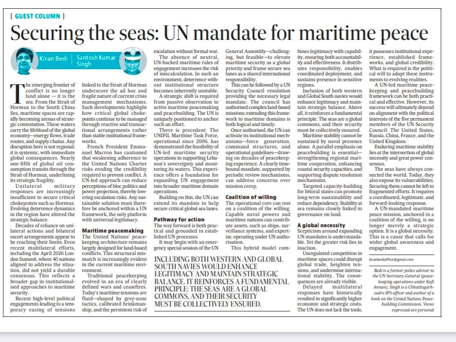 Kiran Bedi is a former police adviser to the UN Secretary-General (peacekeeping operations under Kofi Annan). Singh is a Chhattisgarh-cadre IPS officer and author of a book on the United Nations Peacebuilding Commission. Views expressed are personal.